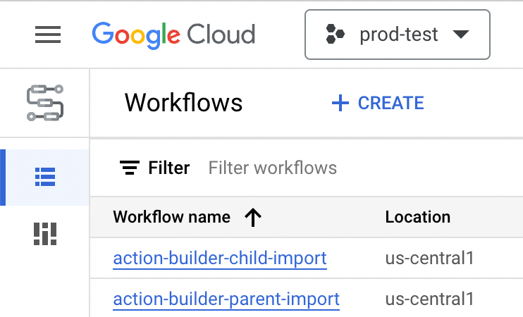 Navigate back to Workflows. Under Workflows, select action-builder-parent-import.