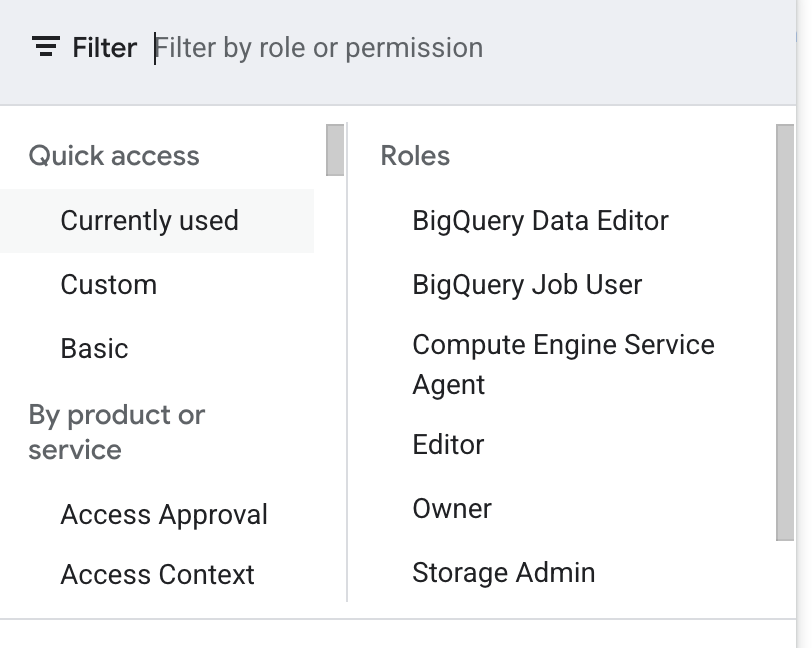 After you finish there, you can assign roles to your service account. Roles indicate the permissions a service account has, and you can read more about recommended roles here for different use cases. Google also has comprehensive documentation of available roles here. To assign roles, select the one you want in the menu. You can and often will add multiple roles. Aim to follow the principle of least privilege - only give your service account the permissions it absolutely needs to complete its tasks. Often, you may have to revisit the permissions after you get your script or service up and running with your service account, but Google’s error messages will tell you explicitly which permissions are missing. Note that any roles you assign here will be PAD project-wide.